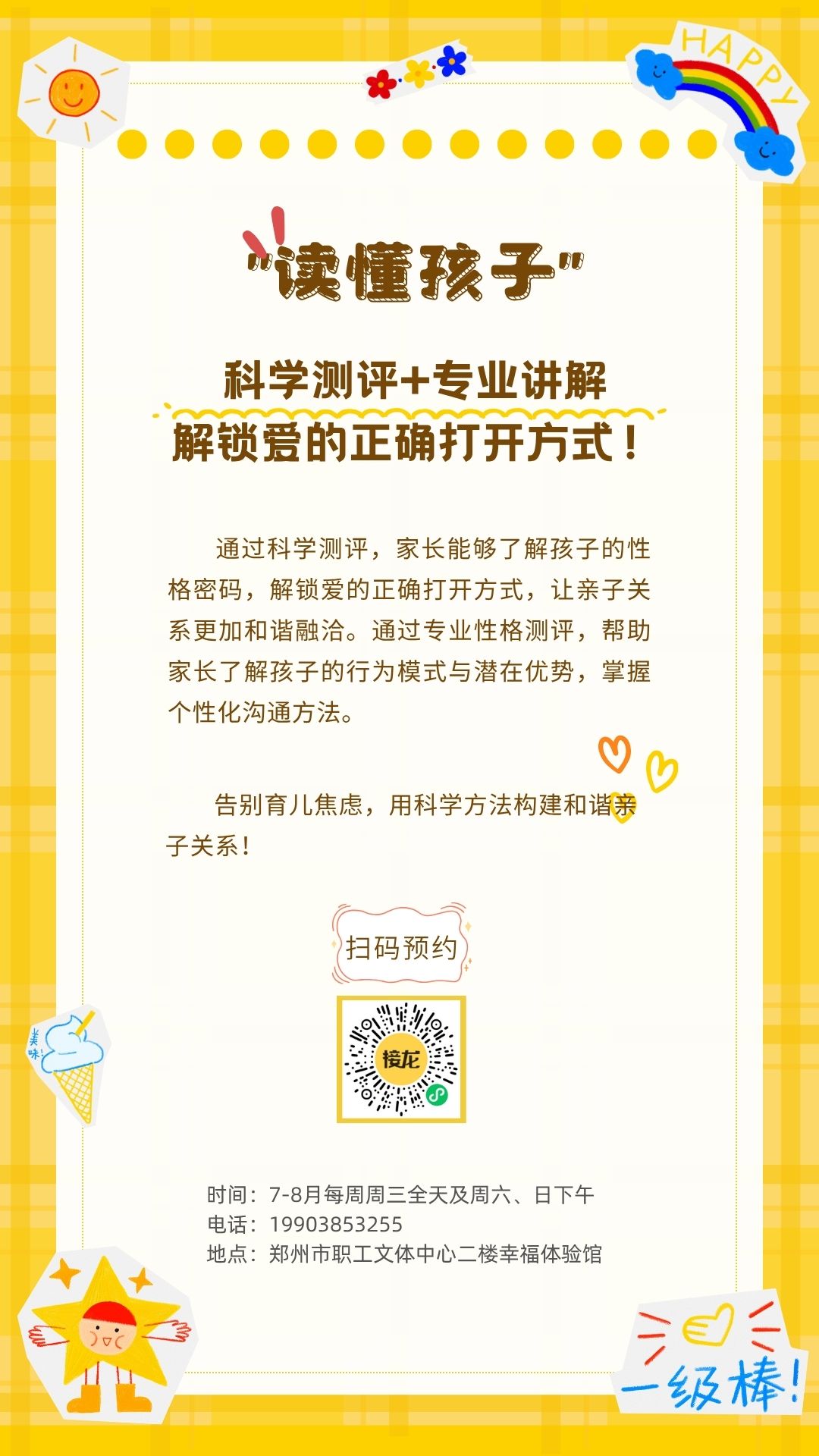 盛夏已至,孩子们的假期如约而来。如何让亲子时光更有温度?怎样科学引导孩子成长?郑州市总工会精心策划7-8月青少年沙龙与团辅系列活动,从性格测评到智慧父母课堂,从亲子沙盘到亲子情景剧,助力您与孩子共同成长!