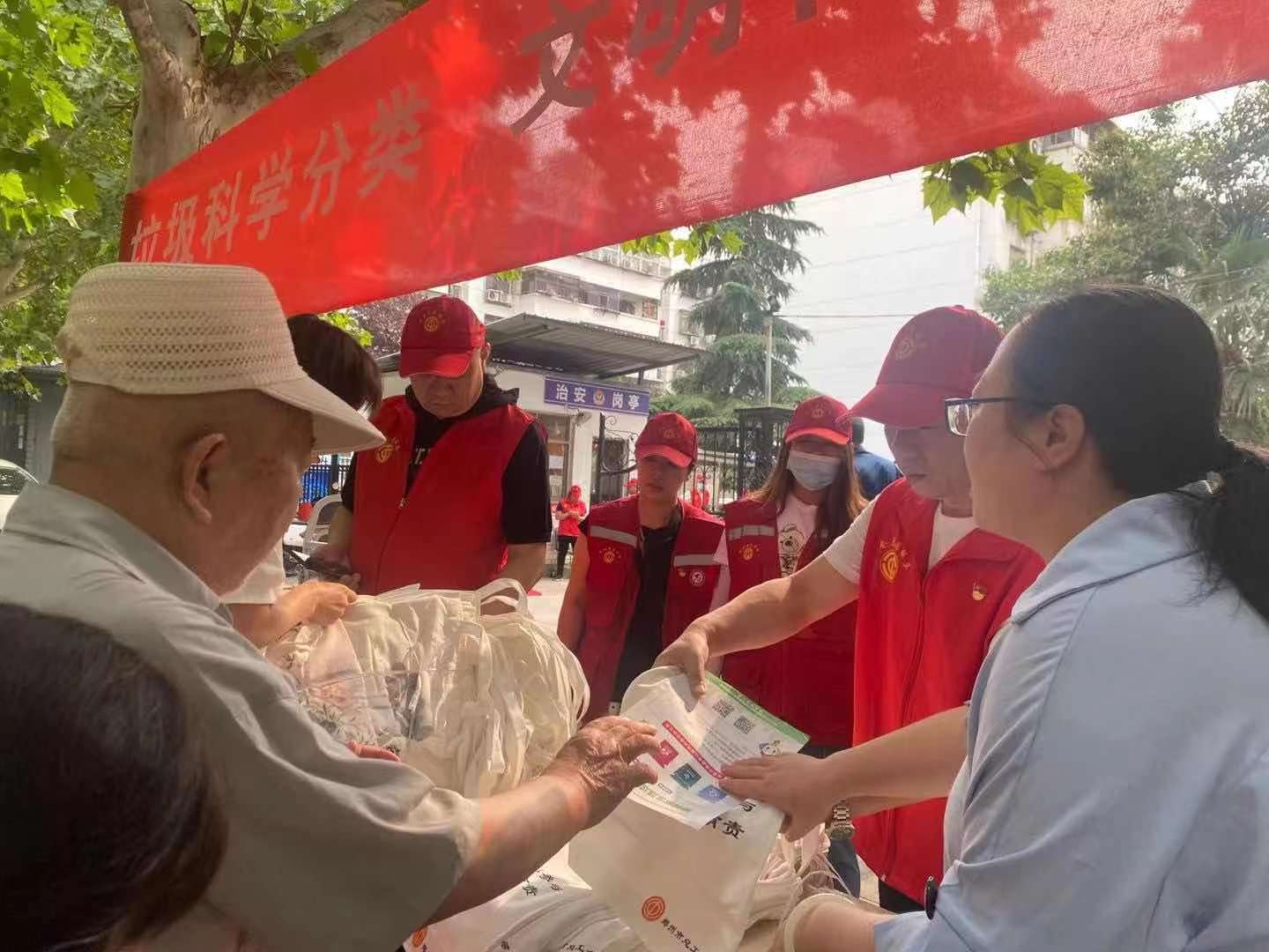 为全面深入贯彻落实习近平总书记生态文明思想和生活垃圾分类工作的重要指示精神,加快推进我市公共机构生活垃圾分类工作,普及生活垃圾分类知识,教育引导干部职工增强生态文明意识,厉行勤俭节约、反对铺张浪费,减少一次性用品的使用,形成生活垃圾分类投放的良好氛围。6月18日至6月20日,郑州市总工会联合机关事务管理局通过微信公众号“郑州工会会员服务”开展“垃圾分类新时尚 工会助力我践行”有奖知识竞答竟答活动,全市参与人次为148156,参与人数34131,中奖人数7800,奖金为10万元。7月2日,利用党员活动日,由郑州市总工会领导段宝强带领市总党员志愿者到郑州市中原区建设路街道市场街社区宣传讲解生活垃圾分类,现场通过发放宣传单、宣传物等活动,引导社区居民生活增强垃圾分类意识,做好生活垃圾分类工作的行动。