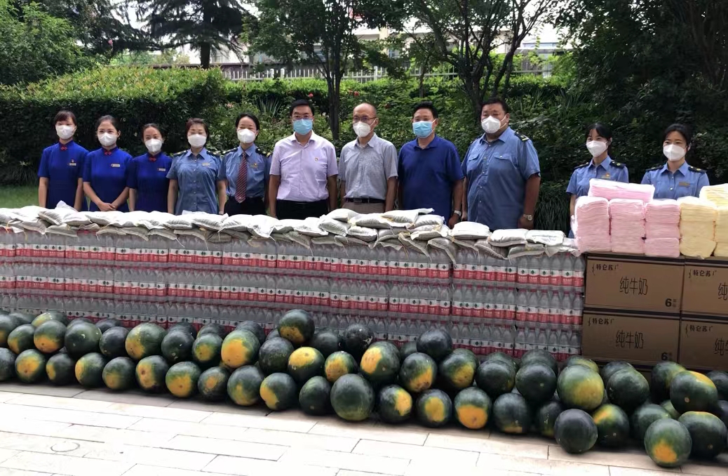 8月10日下午,郑州市总工会党组成员、副主席刘彤标一行到郑州站开展“送清凉”慰问活动,为一线工作人员送去西瓜、矿泉水、绿豆、毛巾和牛奶等防暑降温用品,把市总工会组织的关心关爱送到职工的身边。