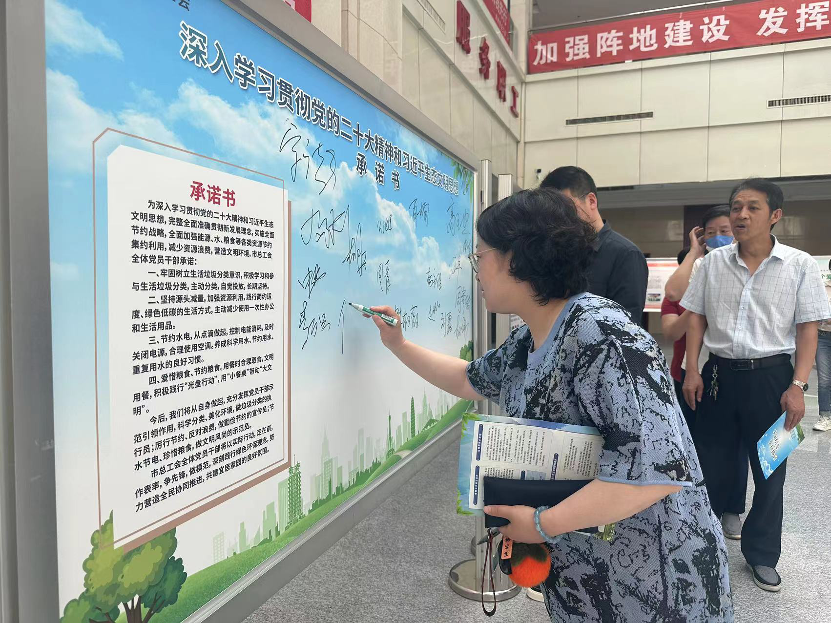 为更好地普及生活垃圾分类知识,持续提高并强化生活垃圾分类的环保意识,引导市总职工干部养成绿色低碳、健康环保的良好文明习惯,5月15日,市总工会在职工之家开展垃圾分类承诺签名暨有奖知识测试活动。
