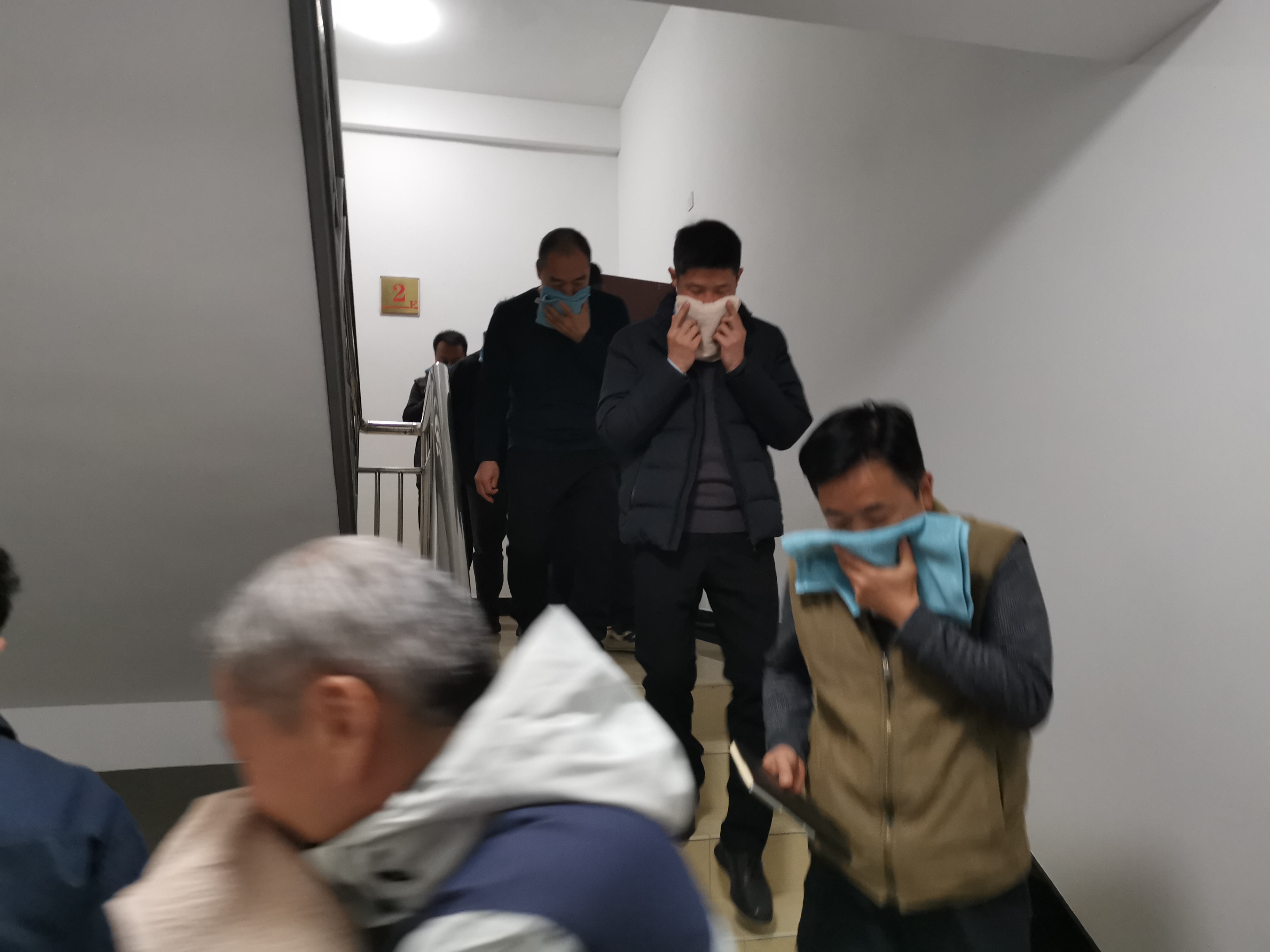 随后,市总工会组织全体干部职工进行消防应急疏散实战演练。现场模拟火灾现场,进行楼梯间疏散和灭火工作。全体人员在安全员的引导下,沿着安全通道指示牌采取弯腰低姿、捂住口鼻的自我保护方式有序逃离危险地带。