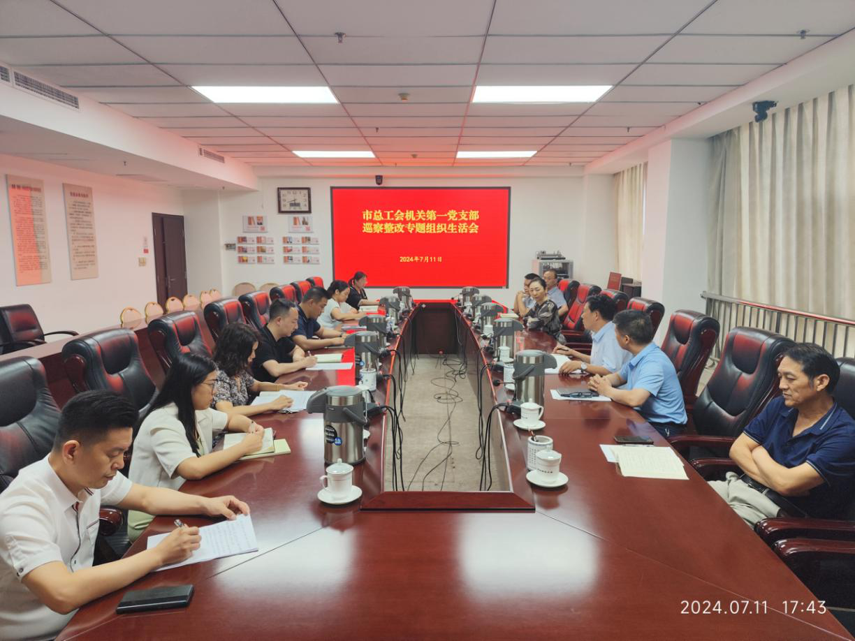 7月11日下午,市总机关第一党支部召开巡察整改专题组织生活会,市总经费审查委员会主任、机关第一党支部书记段科然主持会议,市总党组书记、常务副主席王玉红以普通党员身份参加会议。