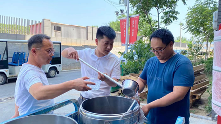 为给员工们解暑降温,6月中旬以来,裕港置业有限公司工会在中德产业园开展了持续10多天的夏日送清凉活动,惠及员工500余人。精心熬制的绿豆汤送到园区各个企业厂房门口,员工们纷纷表示,清凉的绿豆汤甜丝丝的,真切感受到了工会组织的温暖。
