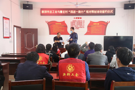 为进一步发挥省级文明单位示范引领作用,深入推进乡村精神文明建设,更好助力乡村振兴。8月29日上午,新郑市总工会副主席刘俊亭带领志愿者深入结对帮创单位孟庄镇曹庄村开展“四送一助力”结对帮创活动,并与曹庄村签订了《“四送一助力”结对帮创活动协议书》。
