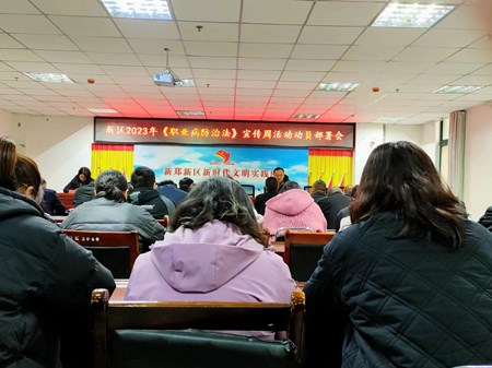 4月24日,新区管委会工会联合会召开2023年《职业病防治法》宣传周活动部署会,辖区各社区工会主席及干部职工90余人参会。新区管委会副科级干部王艳霞围绕宣传周主题“改善工作环境和条件,保护劳动者身心健康”,结合实际案例,通俗易懂地讲解了常见的心理疾病、如何自我调节心理健康、常见职业病及如何自我预防职业病等方面内容。最后,她一一解答了大家的健康咨询问题,给出了针对性的应对措施。