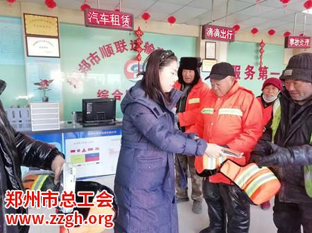 12月21日上午,新村镇工会到新郑市顺联运输有限公司“爱心驿站”开展送温暖活动,慰问辖区50余名环卫工人代表。活动中,新村镇工会工作人员对奋战在一线的环卫工人表示敬意,嘱咐他们寒冬季节一定要做好防冻保暖工作,保障身体健康和户外作业安全,并将爱心物资防寒帽子、手套、速冻水饺分发给大家。