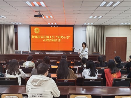 10月17日上午,孟庄镇工会开展以“阳光心态”为主题的心理健康讲座活动,特邀新郑市心理咨询协会会长肖素娟老师前来授课。肖老师结合案例、游戏、图片等多种形式对什么是心态、怎样拥有阳光心态、怎样积极调整心态三个方面进行了讲解。现场气氛活跃,得到了大家的一致赞许。