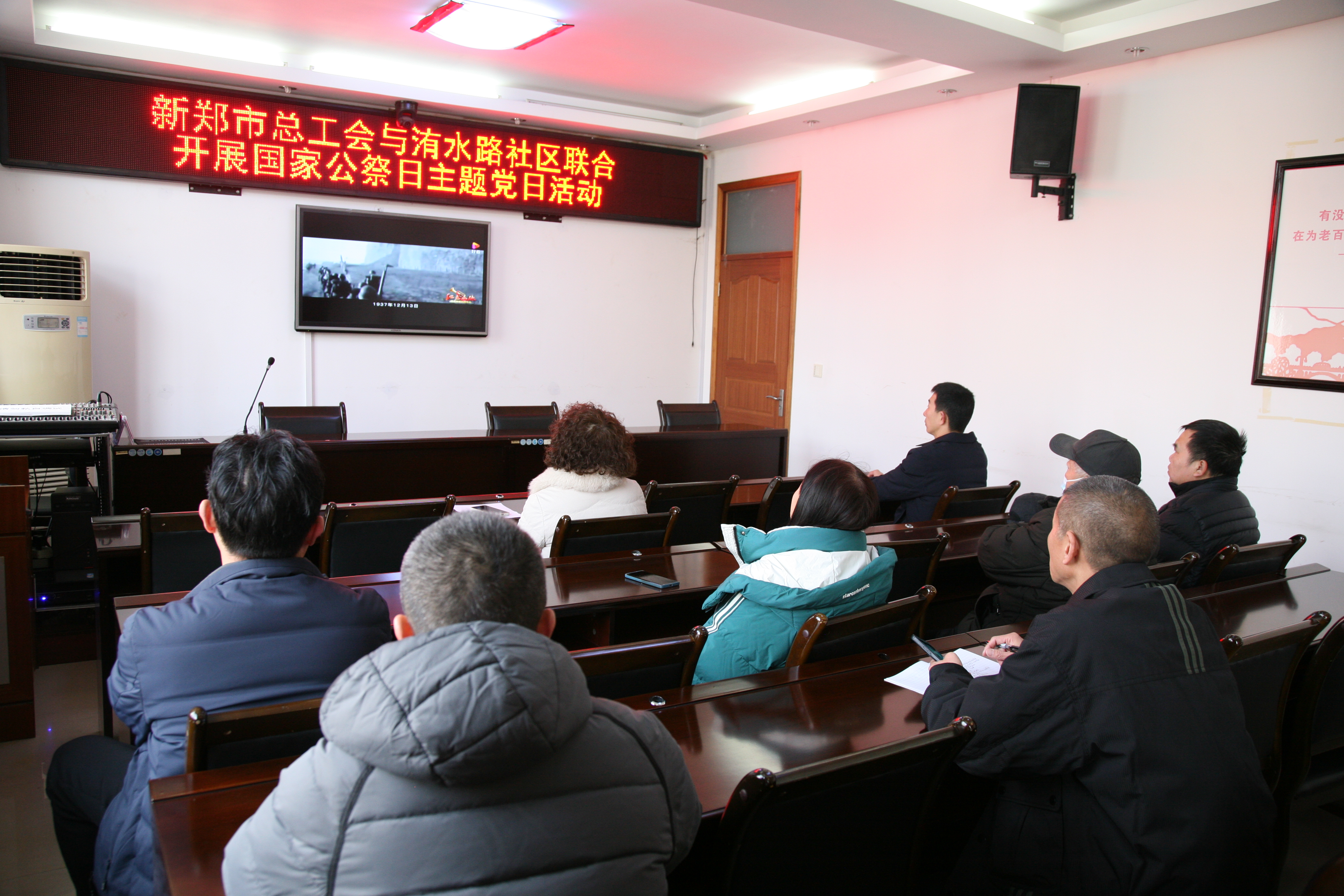 昭昭前事,惕惕后人,铭记历史,勿忘国耻!2024年12月13日是中国第十一个国家公祭日,为激励广大党员干部职工坚定理想信念,增强爱党、爱国的思想自觉和行动自觉,12月13日上午,市总工会党支部与洧水路社区党支部联合开展国家公祭日主题党日活动。