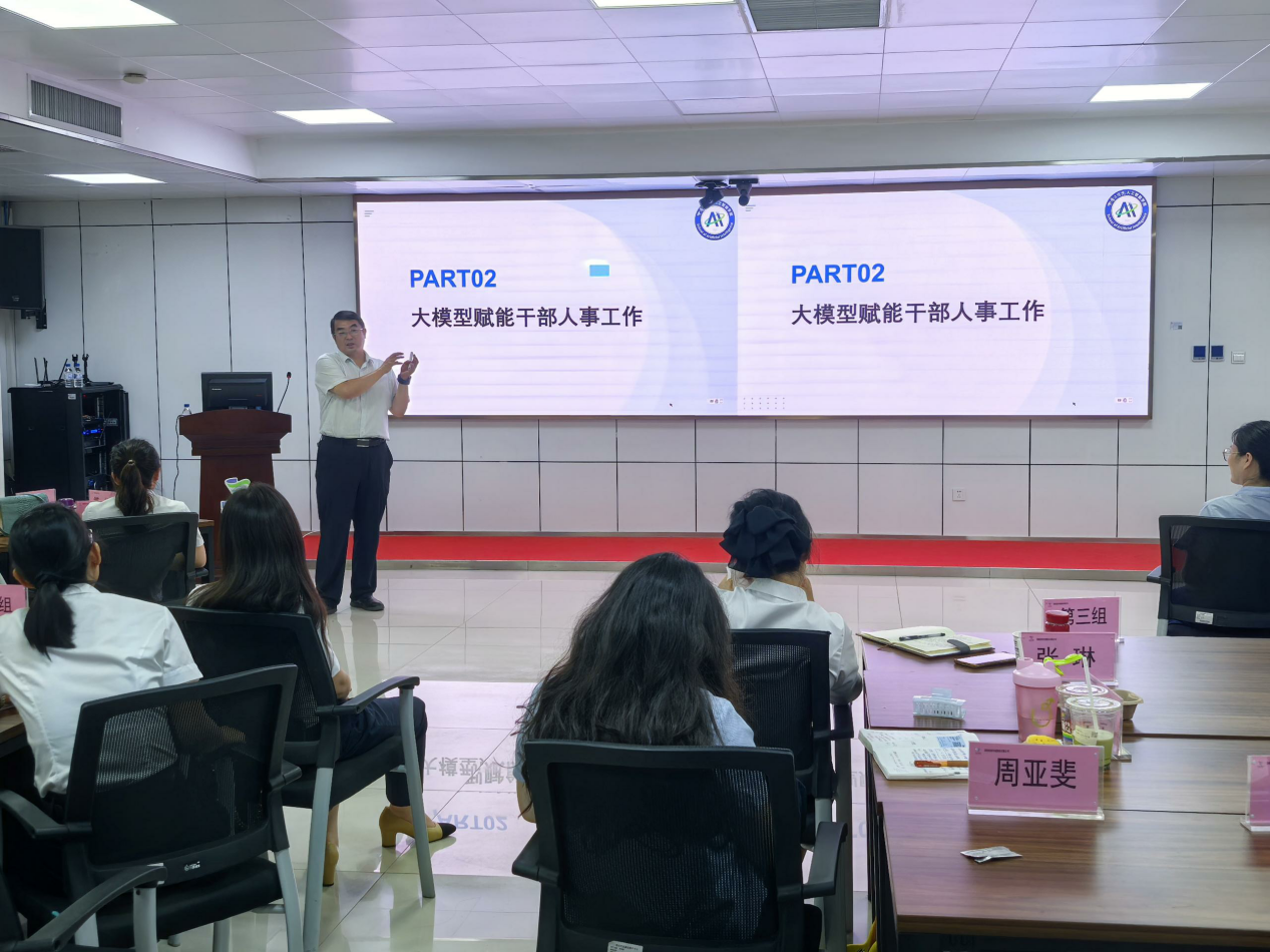 此次培训特邀中原工学院人工智能学院副院长、硕士生导师杨关副教授主讲。杨教授从大模型的底层逻辑讲起,结合行业人事管理特点,详解智能招聘系统如何通过语义分析提升简历筛选效率,人才画像模型怎样实现岗位与人才的精准匹配,以及AI绩效分析工具在量化考核中的应用场景。杨教授还结合案例分享了很多实用的技巧,引发在场人员热烈讨论。参训学员们纷纷表示课程内容非常实用,为推动企业人事工作数字化转型提供了清晰路径。