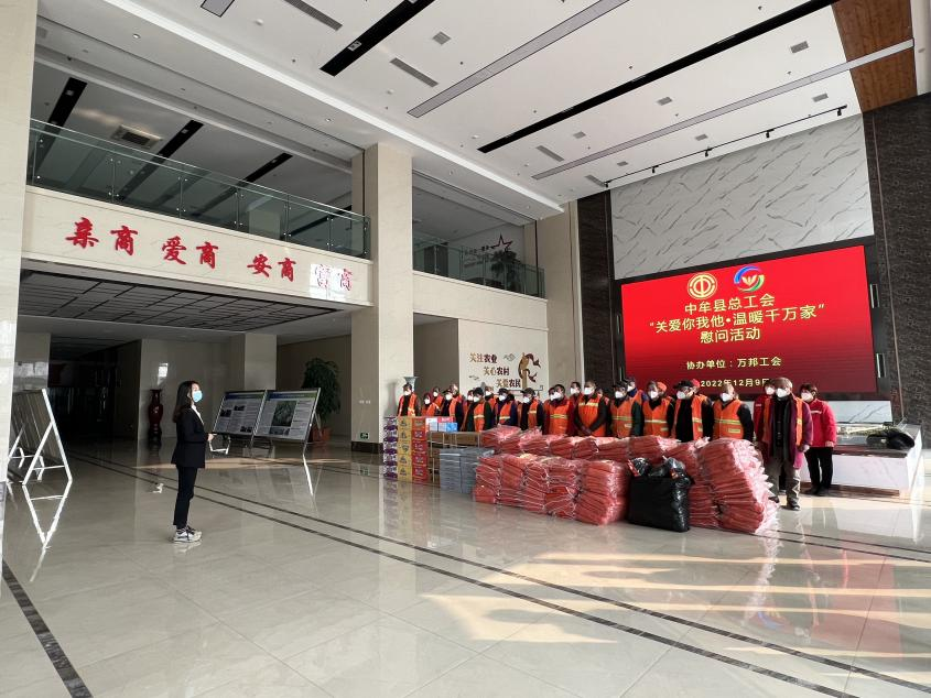 为贯彻落实省、市、县“关爱你我他(她)• 温暖千万家”行动要求,持续提升职工生活品质,把工会组织的温暖送到一线职工心坎上。12月9日上午,中牟县总工会联合万邦工会开展“关爱你我他•温暖千万家”慰问活动,为市场一线的环卫工人、收费处员工送上环卫棉服、手套、耳暖、口罩等物资。