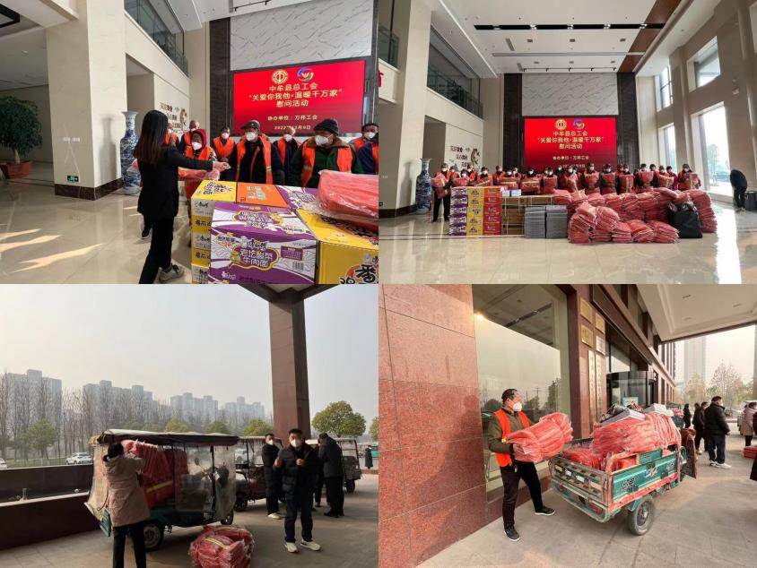 “疫情期间,大家坚守一线,履职尽责,为市场防疫保供工作做出了突出贡献,这些慰问品代表着中牟县总工会和万邦工会的一片心意,希望你们在工作的同时也注意防寒保暖!”在慰问活动现场,一句句贴心的关怀和叮咛,让环卫工切身感受到工会组织的温暖。
