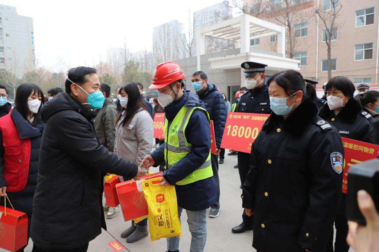 活动现场,卢志刚向全县“两节”期间坚守在一线岗位的干部职工及他们的家人致以新年问候,感谢他们在节日期间坚守岗位、辛勤付出,希望他们为了中牟更好的发展、美好的明天继续努力,切实做好春运服务保障等各项工作,叮嘱大家要注意防寒保暖,加强个人、家庭和单位的防护。随后,出席领导为重大项目、困难企业和一线岗位的职工代表送上了慰问金及慰问物资,让广大职工真切地感受到了党和政府的关怀、工会组织的温暖。