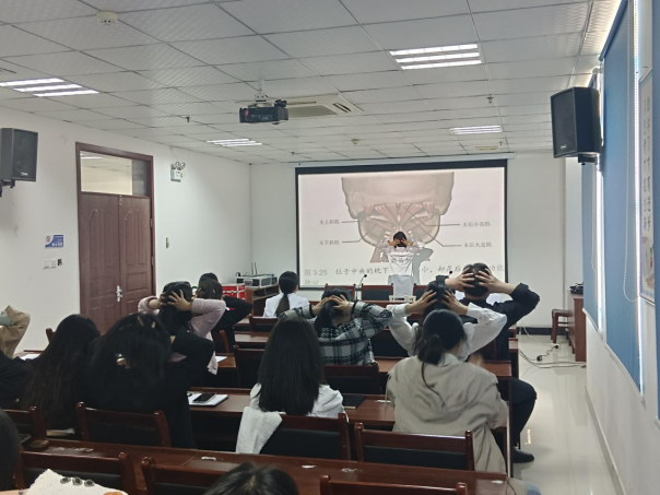 长期伏案工作、弯腰低头,腰椎间盘突出、颈椎病、富贵包等问题屡见不鲜。白医生通过丰富多彩的形式,对脊柱常见病、颈椎病、颈椎病的预防、常见腰椎病、发病原因、临床表现、预防和保健等方面进行了细致的讲解,现场带动大家学习演练养生健康操,向大家分享了日常工作生活中保护脊椎的小技巧,活动气氛轻松、热烈、活泼。