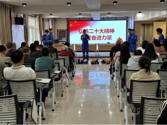 为宣传好党的二十大精神,5月26日,中牟县总工会携蓝天救援队宣讲团成员在刘集镇绿博新城社区党群服务中心“零距离”向社区党员、居民宣讲党的二十大精神。