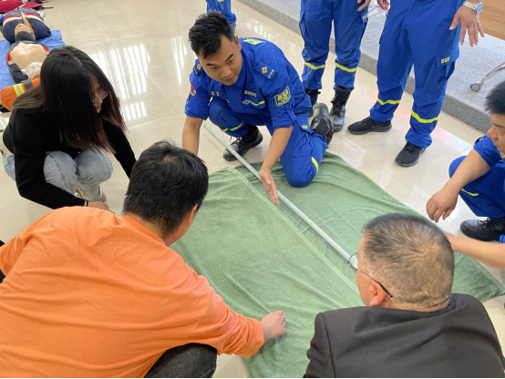 宣讲结束后,蓝天救援队成员采用实操演练的方式进行讲解,为社区居民普及了心肺复苏、“海姆立克急救法”、人工呼吸、突发意外事故等应急救护知识培训,内容深入浅出,通俗易懂,让参训社区居民深刻认识到在遇到紧急情况和灾难时应急救护技能的重要性,如何展开自救互救,以及救助过程中的注意事项等。