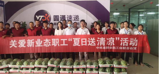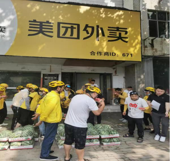 夏日炎炎、有瓜真甜。中牟县新业态工会联合会与外卖骑手、快递小哥、货车司机等新就业群体一起感受西瓜味的夏天。