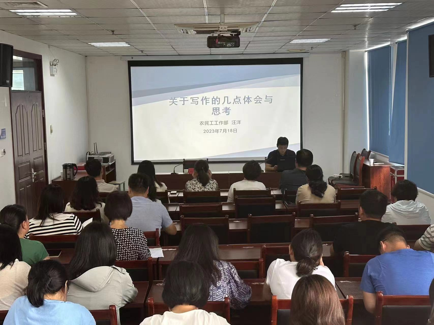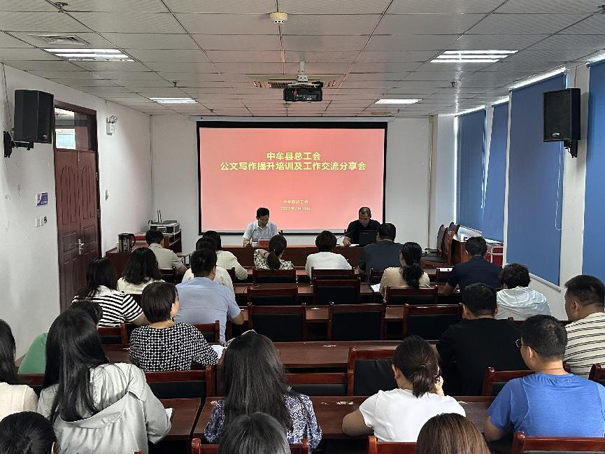 为提升工会全体机关干部的公文写作水平,规范公文报送程序,提高写作质量,7月19日上午,在中牟县总工会5楼会议室组织开展了“公文写作提升培训及工作交流”分享会,此次培训特别邀请了县政府办政研室主任吴超同志为大家授课,工会全体人员参会。