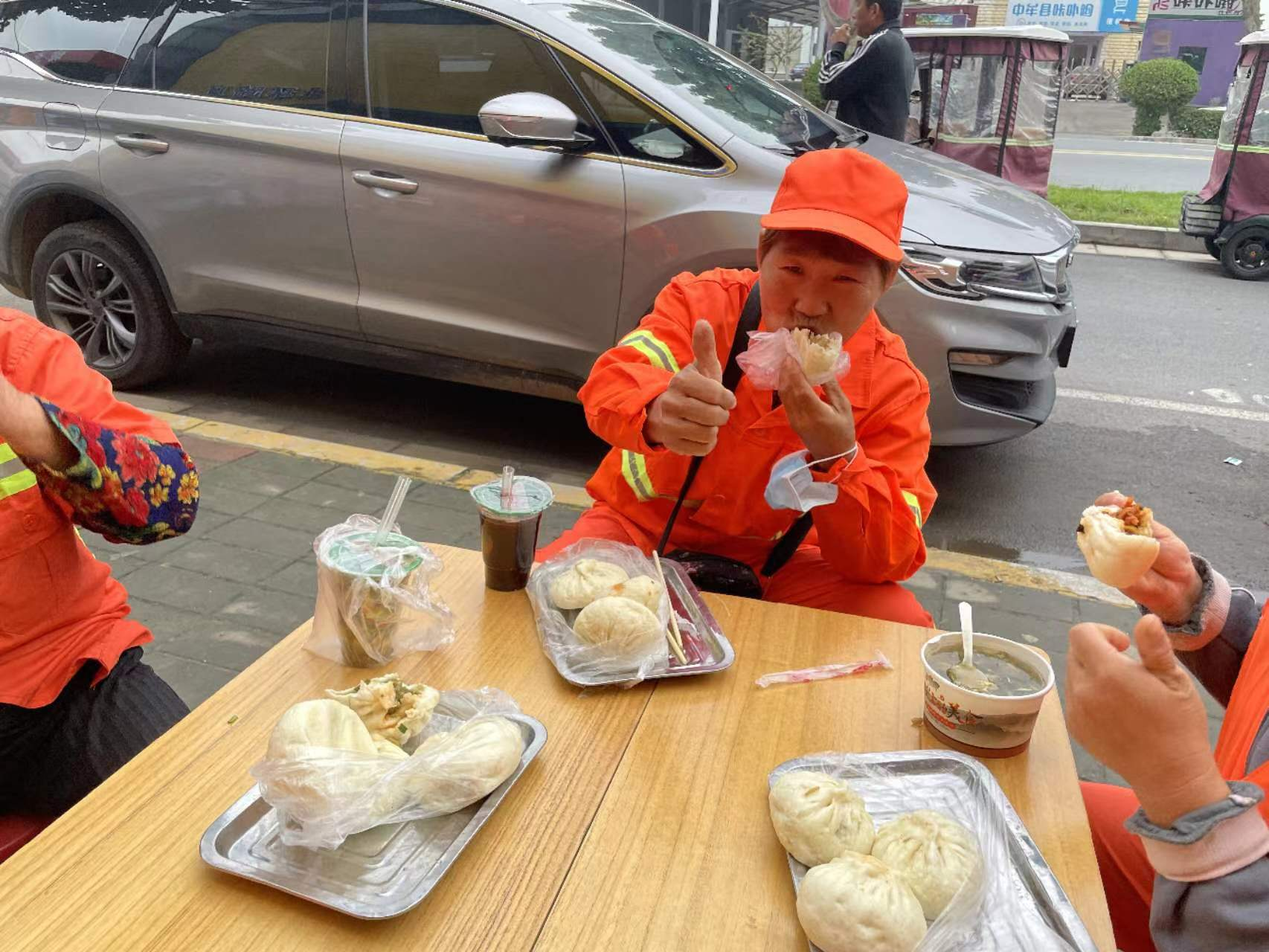 心,共同出力,为更多的环卫工人提供爱心早餐。