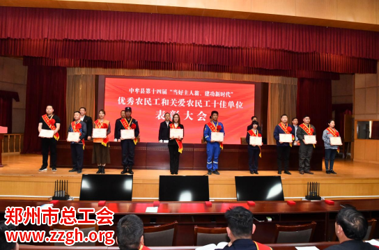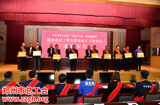会议宣读了《中共中牟县委 中牟县人民政府关于表彰中牟县第十四届“当好主人翁、建功新时代”优秀农民工和关爱农民工十佳单位的决定》,并现场对优秀农民工代表和关爱农民工十佳单位进行了表彰。优秀农民工代表和关爱农民工十佳单位代表作了典型发言。