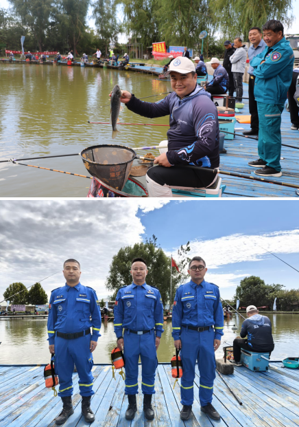 活动现场,随着裁判一声令下,岸边百竿齐发,选手们全神贯注,各显神通,挂饵、抛竿、收竿,中鱼、提竿......手法利落娴熟,动作一气呵成。本次赛事配备了医疗组,中牟县蓝天救援队为参赛选手提供安全保障。