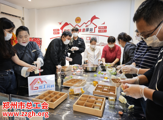 活动当日,现场气氛热烈且温馨,在手工绿豆糕制作区域,丰富的食材与精致的模具一应俱全。职工兴致勃勃地动手揉制、塑形,将对家人的思念、对团圆的期盼,化作甜蜜的心意融入到一块块软糯香甜的绿豆糕中。大家一边制作,一边交流分享,欢声笑语回荡在整个驿站。