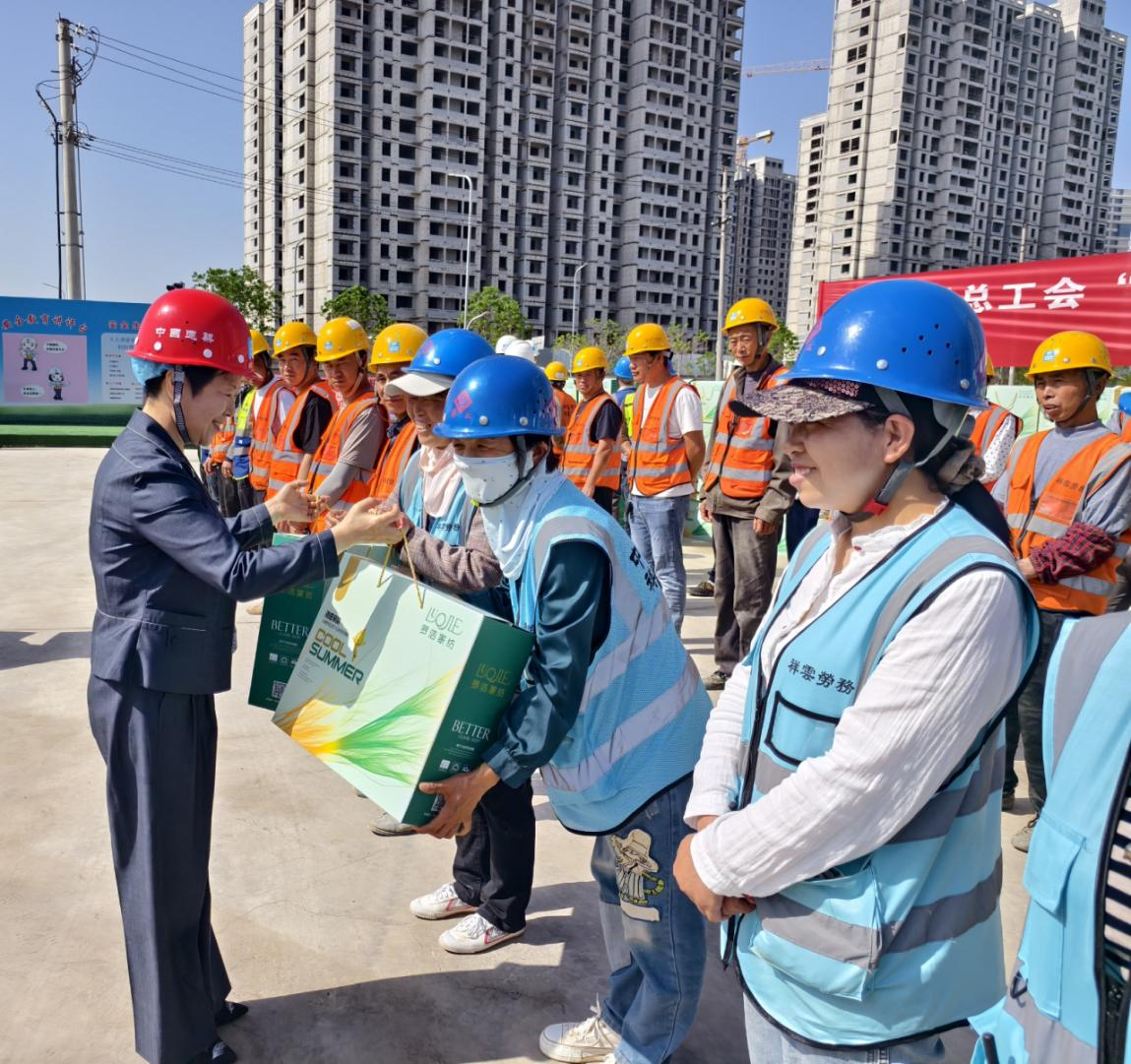 4月26日上午,在“五一”国际劳动节来临之际,中原区总工会开展了慰问重点在建项目一线建筑工人活动。区人大二级调研员、区总工会党组书记、主席李艳玲一行走进郑州西流湖控股有限公司郑州城发集团驻中原区重点项目工地、中建七局建筑装饰工程有限公司中原区常庄安置房项目工地、中铁七局集团有限公司郑州市中原区赵坡(2-4组)棚户区改造项目工地看望奋战在一线的建筑工人,送去了节日的祝福与慰问品,表达了对劳动者的崇高敬意,凸显了劳动最光荣的寓意。