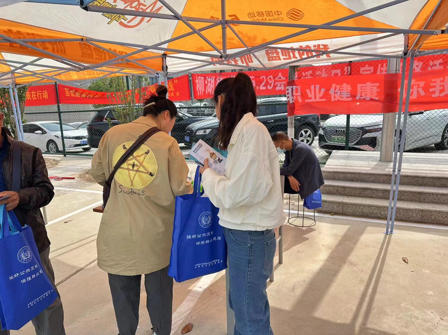 4月29日上午,中原区总工会联合区卫生健康委、区民政局、区人社局等部门在大中原汽贸城集中进行第22个全国《中华人民共和国职业病防治法》宣传周活动。