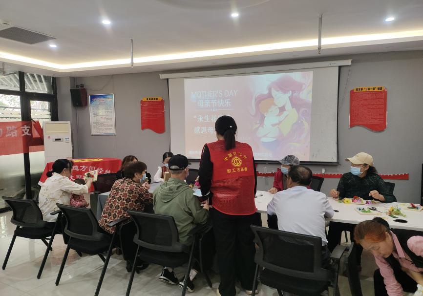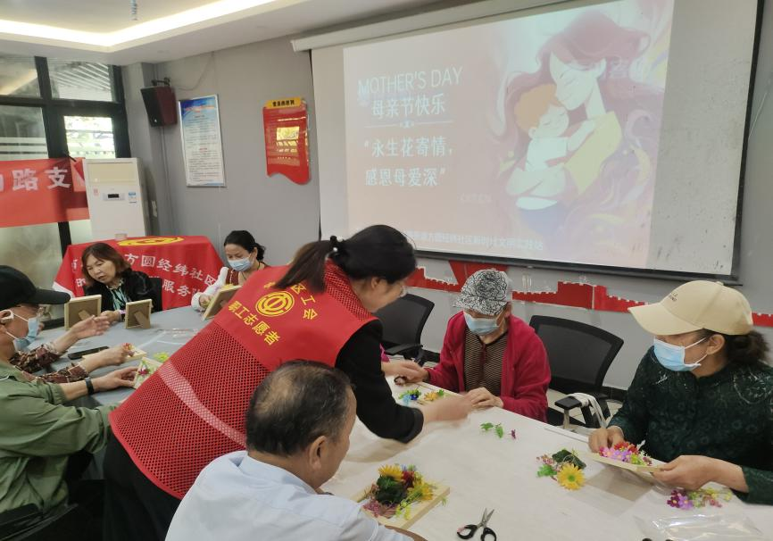 为弘扬中华民族孝亲敬母的传统美德,营造感恩母亲的温馨氛围,5月9日,中原区棉纺路街道方圆经纬社区工会联合会开展了“永生花寄情,感恩母爱深”母亲节永生花DIY主题活动,以创意手工为载体,传递对母亲的浓浓爱意。