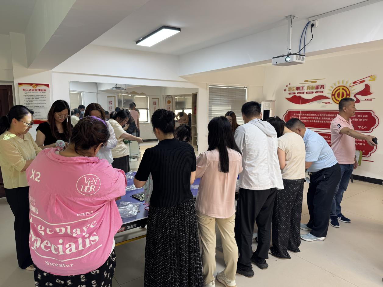 活动以“艾草”为媒,串联起端午民俗与健康养生理念。现场,工会精心布置的艾草香囊、端午主题挂饰营造出浓郁节日氛围,参与者们手持棉布与彩绳,或低头专注缝制,或相互探讨针法,一针一线间,将艾草的清香与节日的祝福编织进方寸之间。