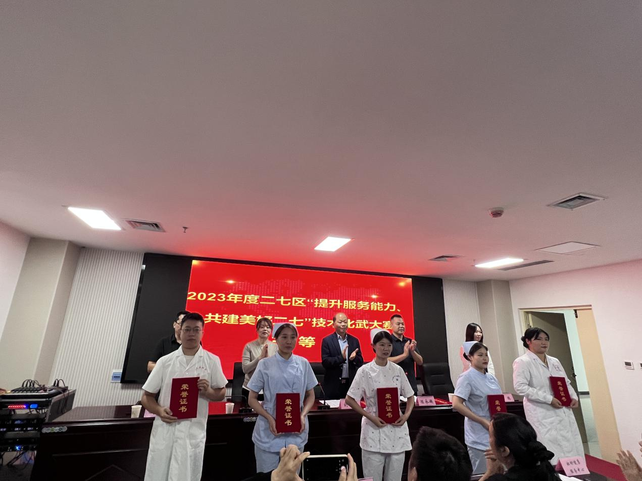 为进一步提高基层医疗机构服务水平,弘扬艰苦奋斗的劳动精神、争创一流的劳模精神和精益求精的工匠精神,自8月份起,二七区总工会与区卫生健康委员会联合举办的为期2个月的二七区“提升服务能力、共建美好二七”技术比武竞赛活动于9月25日圆满落下帷幕。区人大常委会党组成员、副主任,区总工会主席刘子科;区总工会党组书记、常务副主席李青青;区总工会党组副书记臧刘伟;区卫健委副主任陈永超;区卫健委副主任王瑞出席表彰大会。