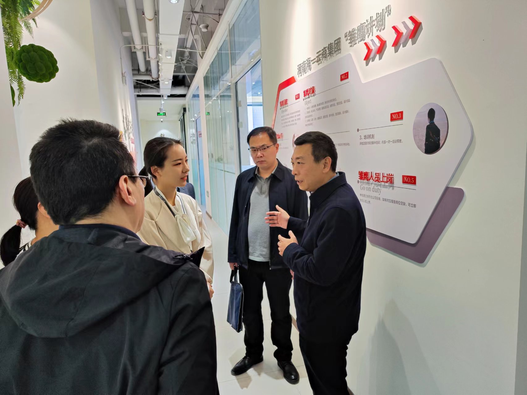 2024年3月22日,郑州市总工会党组成员、副主席许振亚来我区海一云商集团工会调研指导新业态工会工作并开展座谈,市总工会四级调研员胡忠和、基层工作部部长杨宇、区总工会党组副书记臧刘伟、淮河路工会主席陆艳茹陪同调研。