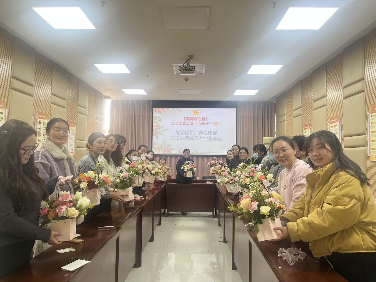 为进一步加强职工的人文关怀与心理疏导,全面守护职工的心灵绿洲,二七区总工会于近日连续举办两场别开生面的心理健康活动——“指尖花艺,养心赋能”插花体验与“喜迎蛇年,畅‘画’未来”职工心理健康沙龙,旨在为职工们提供独特的心理减压体验,帮助他们释放压力,并在迎接新的一年的同时注入更多积极的心理能量。