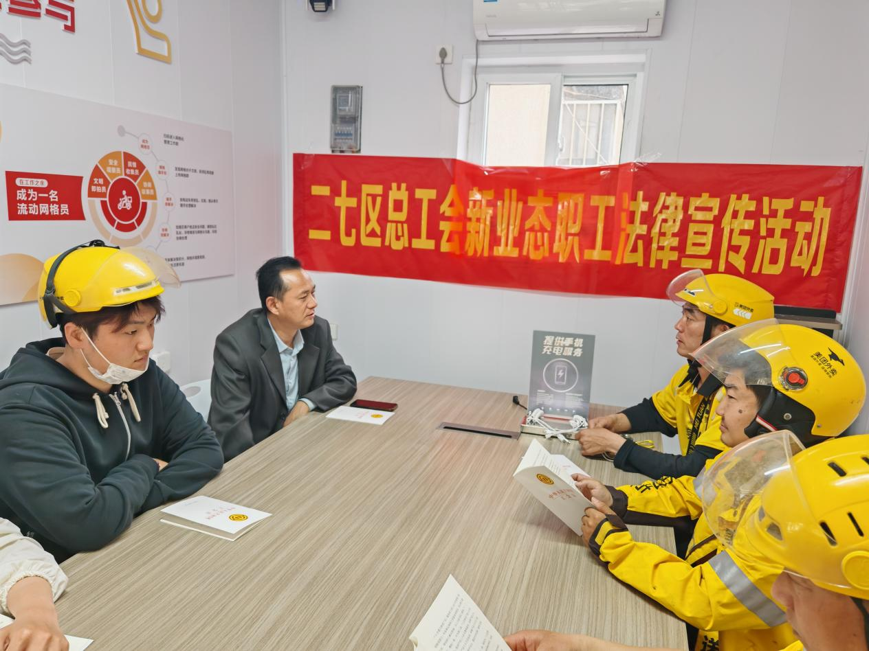 活动期间,二七区总工会邀请专业律师通过举办专题讲座、案例分析等方式,详细解读工会法的相关条款和“一函两书”制度的具体内容及操作流程。同时,工作人员还向外卖员发放了宣传资料,耐心解答他们提出的各类法律问题,引导他们依法维护自身权益。