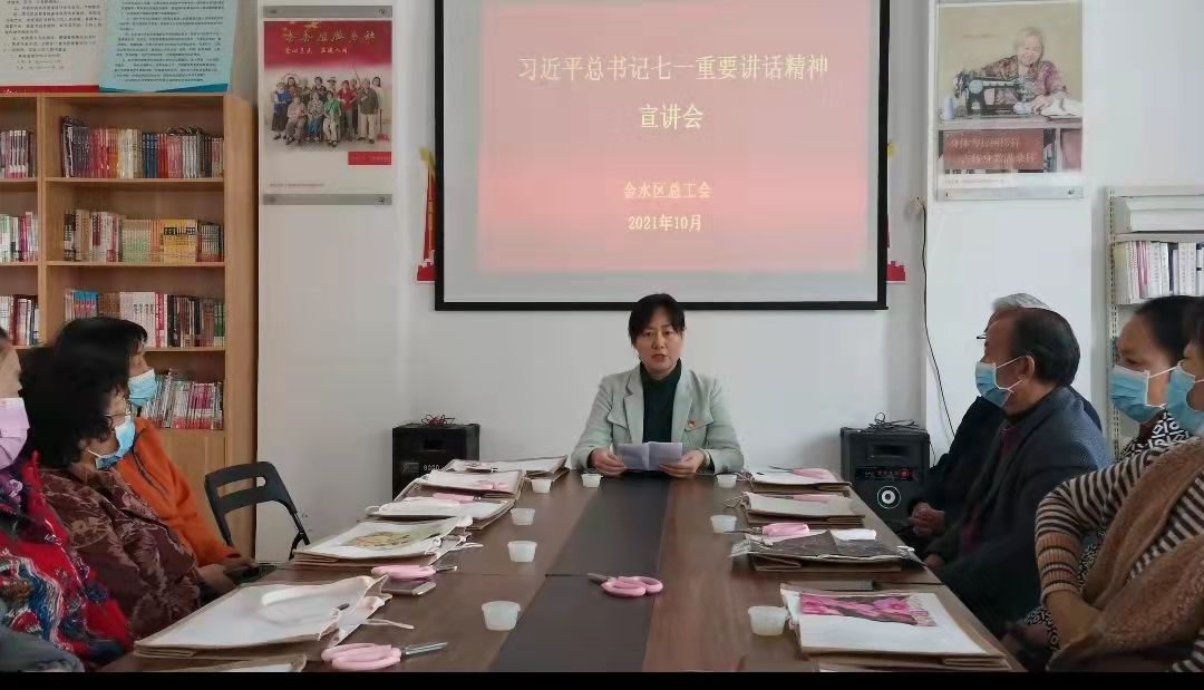 为深入学习贯彻习近平总书记“七一”重要讲话精神,切实提高职工群众的责任感和使命感,10月27日、28日下午,金水区总工会在区委主楼301会议室和东风路轻院社区,连续开展了两场主题宣讲会,基层工会干部、辖区党员群众参加会议。