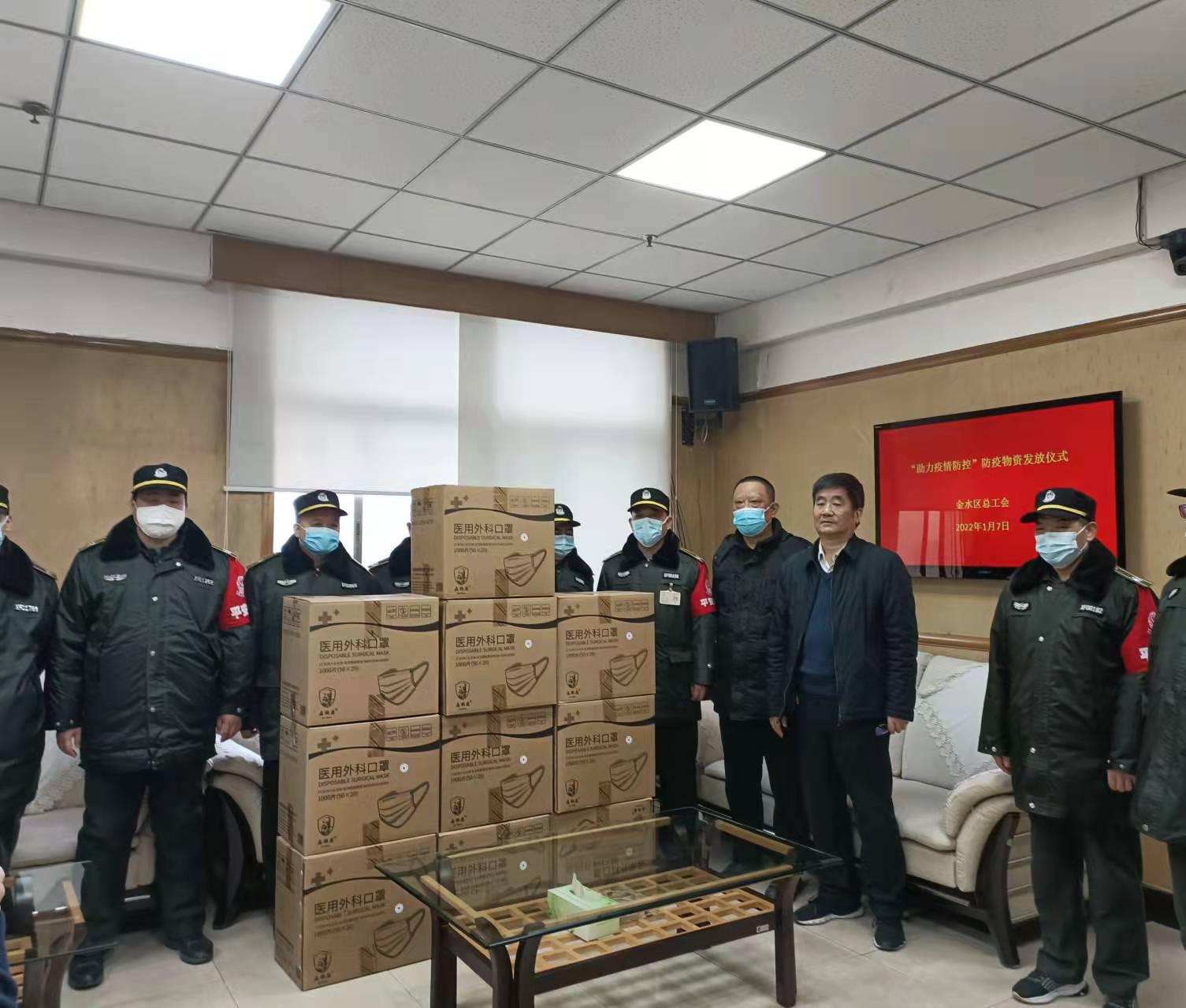 疫情无情,工会暖心。金水区工会充分发挥工会组织作用,始终把维护职工生命安全和身心健康权益放在首要位置,积极做好疫情防控服务保障工作,坚决助力打赢疫情防控阻击战。在做好疫情防控工作的同时,工会始终牢记关心帮助服务职工的职责。1月7日上午金水区总工会调拨防疫物资,第一时间将口罩等防疫物资发放到巡防队员等防疫一线职工手中。发放过程中,区总工会领导慰问了奋战在防疫一线的队员代表,了解了坚守在一线工作岗位的巡防队员的工作情况,对在防疫一线奋战的巡防队员们舍小家顾大家,为保证广大人民群众生产生活,所做出的努力和贡献给予赞扬,叮嘱大家做好自我防护。