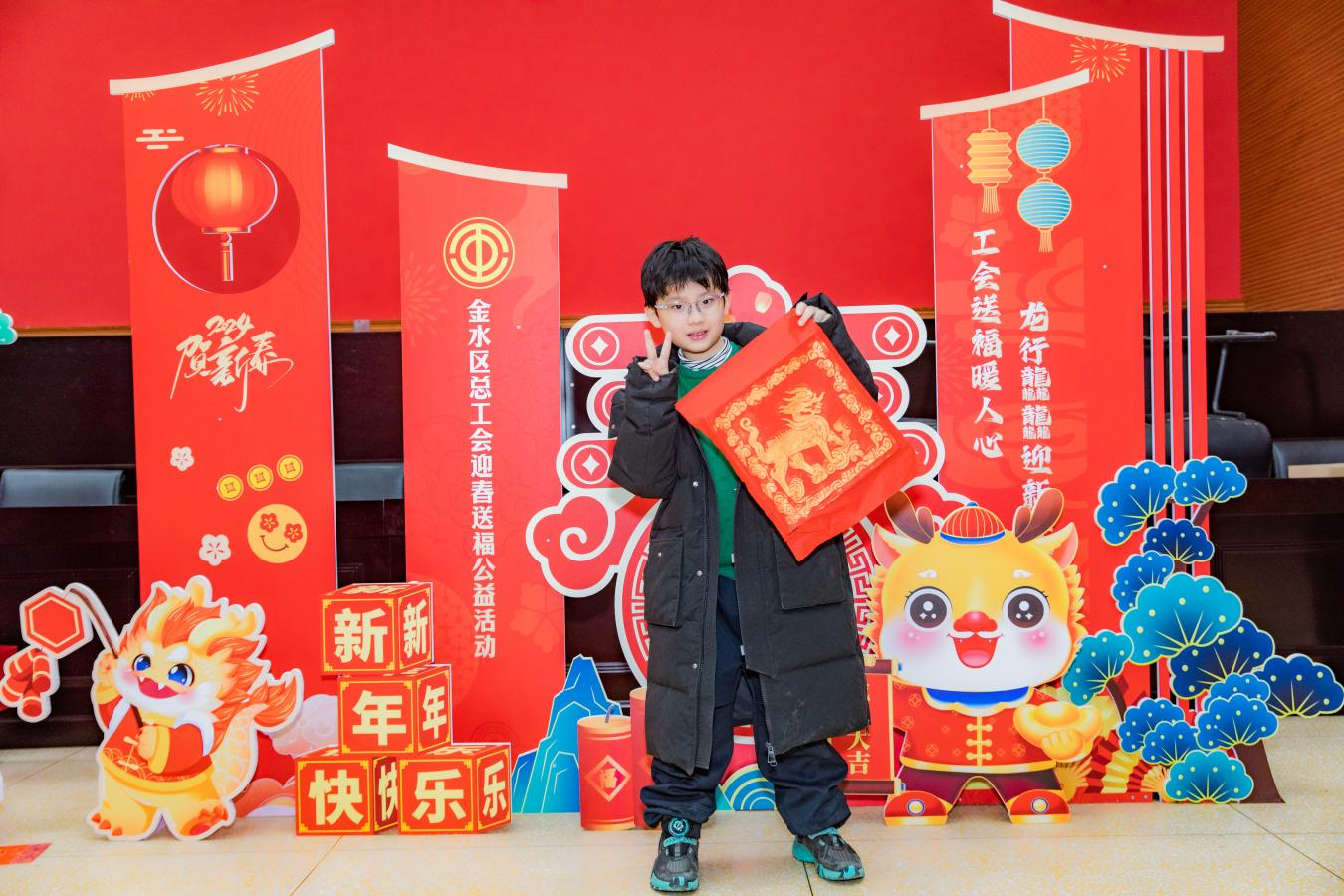 在区机关主会场,非遗剪纸、拓印制作区域气氛活跃,职工们在老师指导下体验剪纸、拓印,感受非遗文化的独特魅力。在金水工会文化路街道驿站分会场,一副副苍劲有力的精美春联和一张张圆润饱满的“福”字,在书法家行云流水下一气呵成,满载着工会“娘家人”的美好祝福跃然纸上。外卖员、环卫工人等户外劳动者手捧吉祥喜庆的“年味儿”艺术品满载而归,喜悦之情溢于言表。