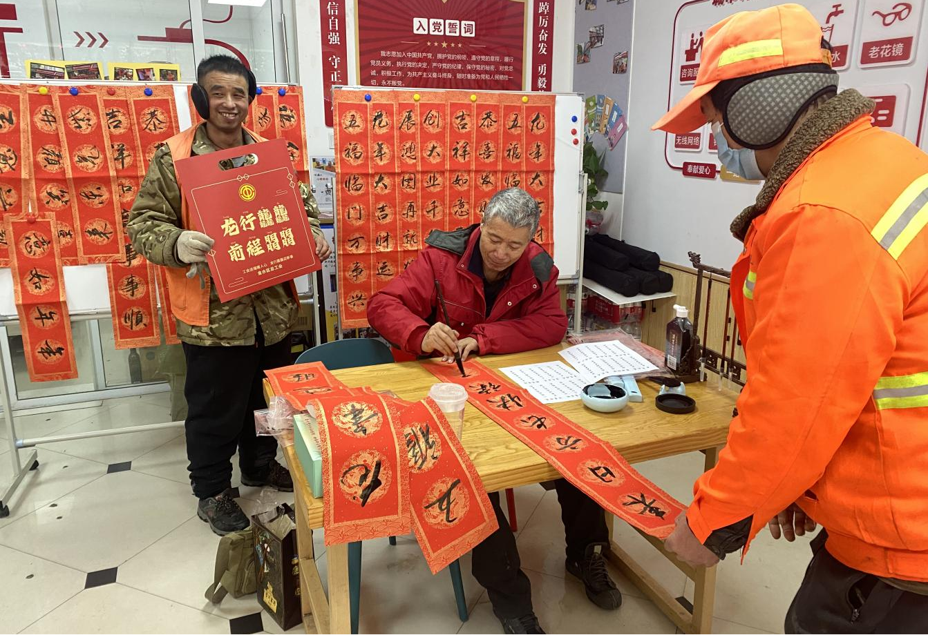 2月1日,金水区总工会举办的“工会送福暖人心 龙行龘龘迎新春”2024年迎春送福公益活动在区机关主会场和6个工会驿站分会场同步举行。活动邀请区书法家协会成员和区文化馆非遗剪纸、拓印专家以书写春联、剪纸和拓印制作等形式,向广大职工群众,特别是包括新就业形态劳动者在内的户外劳动者送上新春的祝福。