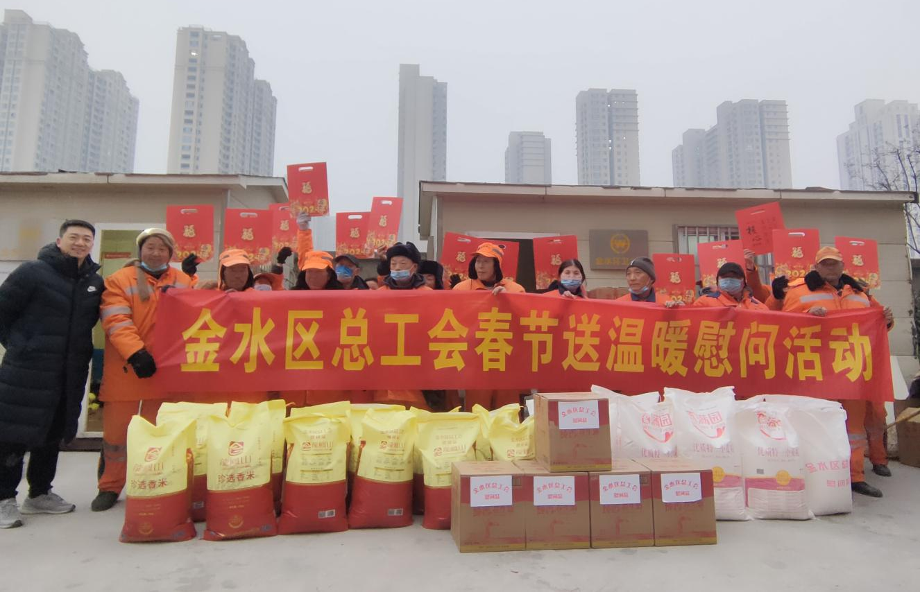 2024年春节来临之际,为把党委、政府的关心关怀与工会组织的温暖及时送到广大职工群众的心坎上,推动劳动保护工作落实到一线户外劳动群体,近期,郑州市金水区总工会深入一线开展丰富多彩的“春节送温暖”活动,为一线职工送去慰问物资及新春祝福。