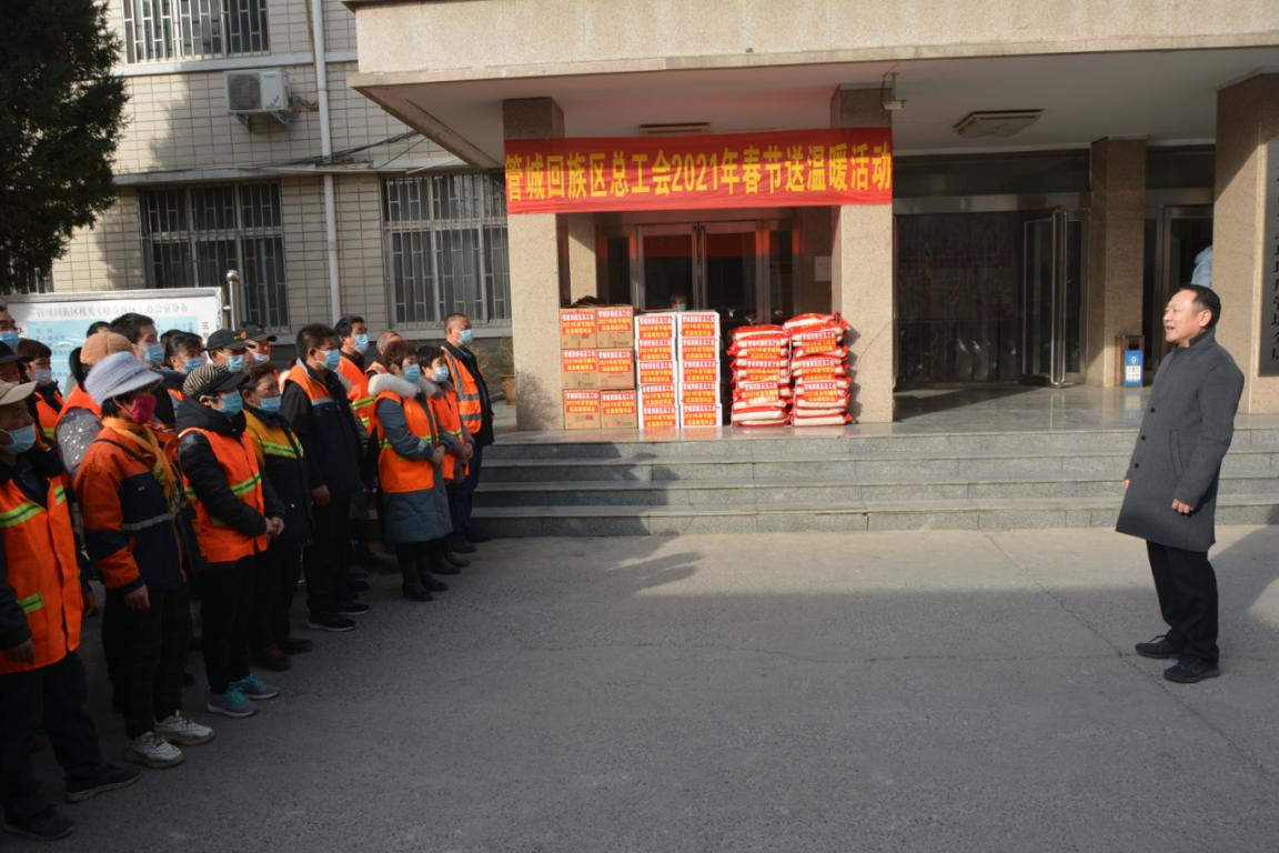 1月29日,管城回族区总工会深入贯彻党的十九届五中全会精神和习近平总书记给郑州圆方集团的重要回信精神,结合当前新冠疫情防控形势要求,开展春节送温暖慰问活动,把党和政府的关怀、工会组织的温暖送到一线职工的心坎上,确保全区广大职工度过欢乐祥和的节日。
