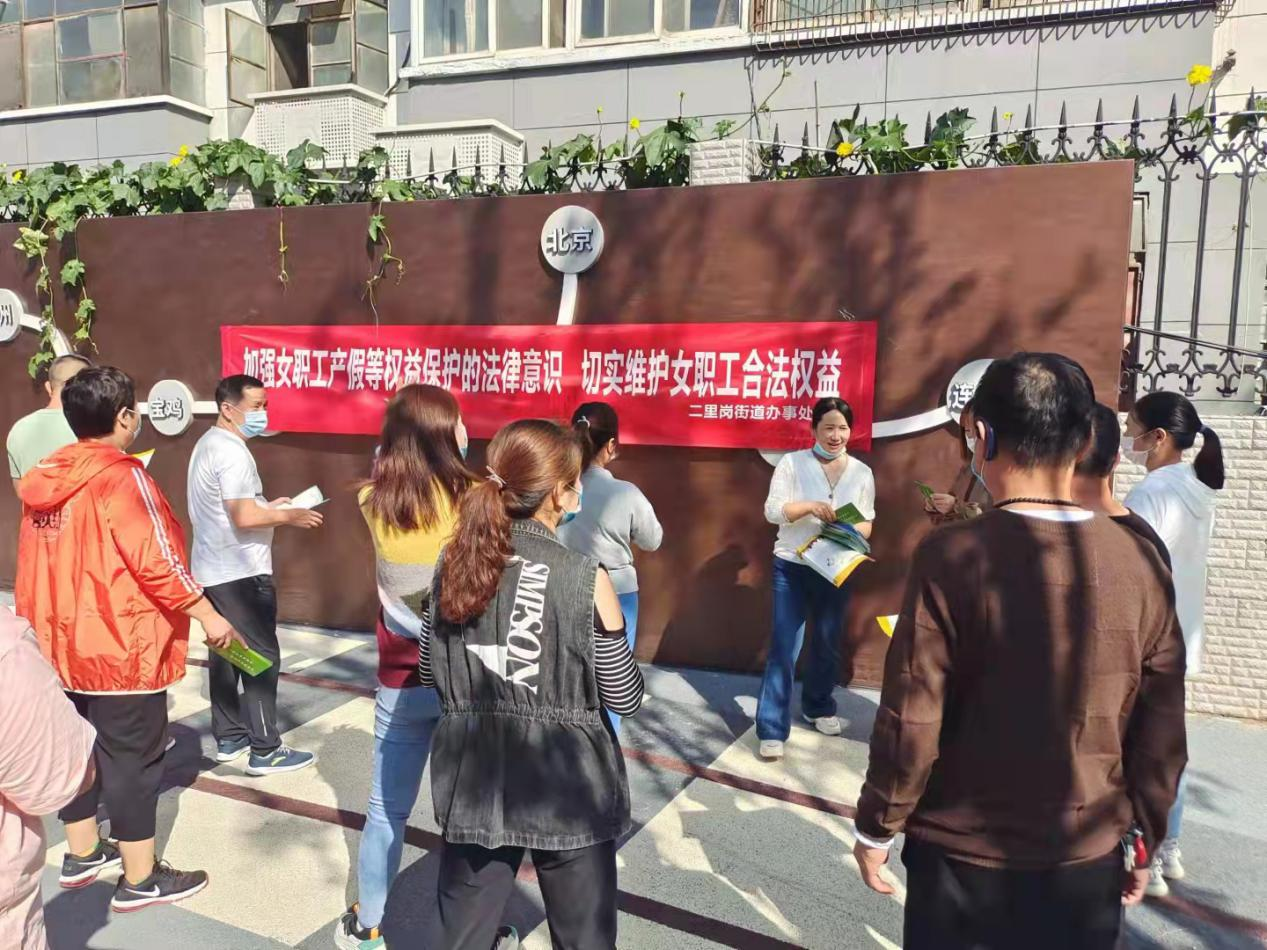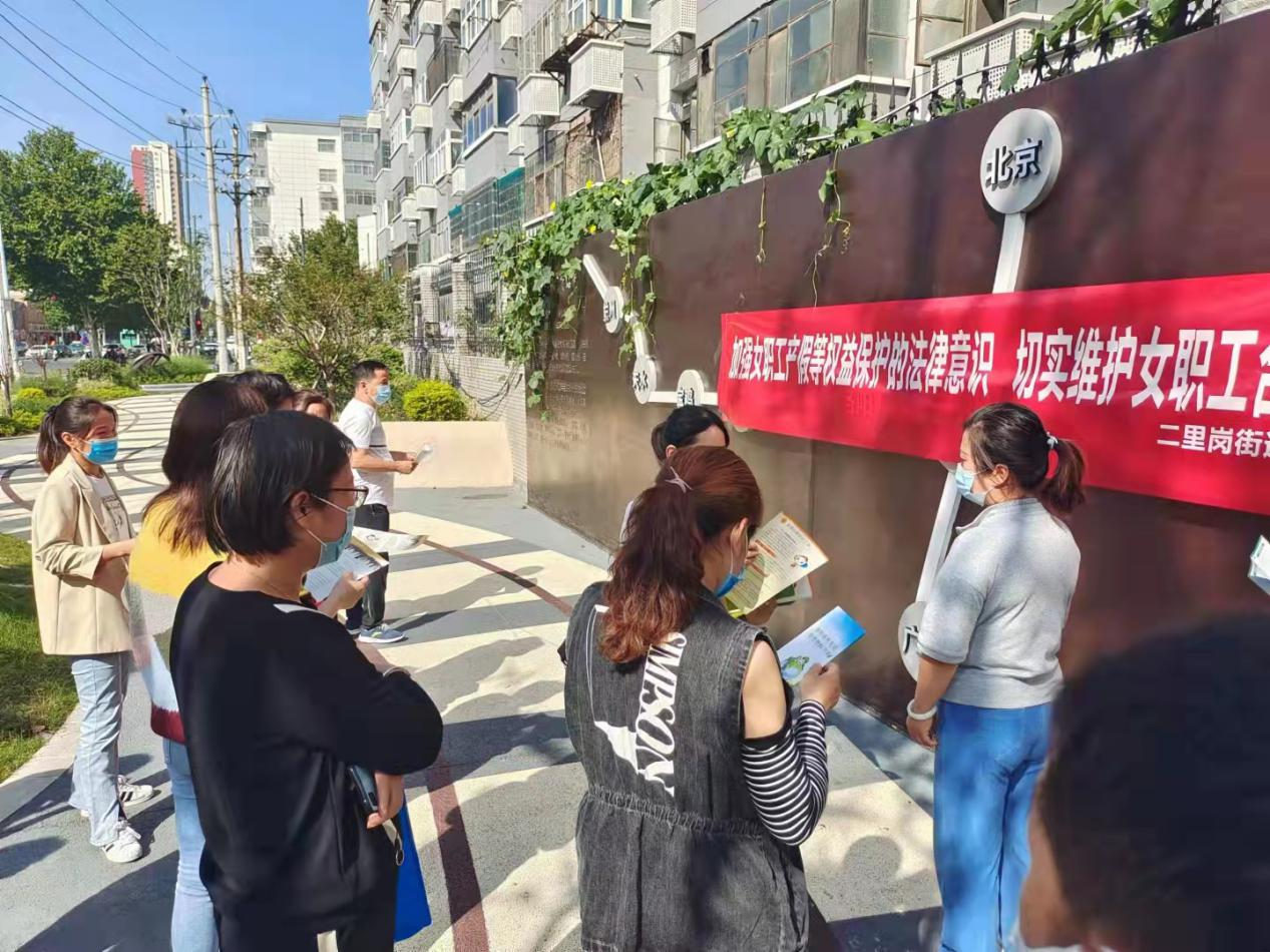 为了切实维护女职工劳动保障权益,提高女职工法律意识,增强女职工知法、懂法、守法、用法的能力,9月29日二里岗工会联合社保部门在城东路货站街交叉口开展《女职工产假等权益保护》的宣传活动。