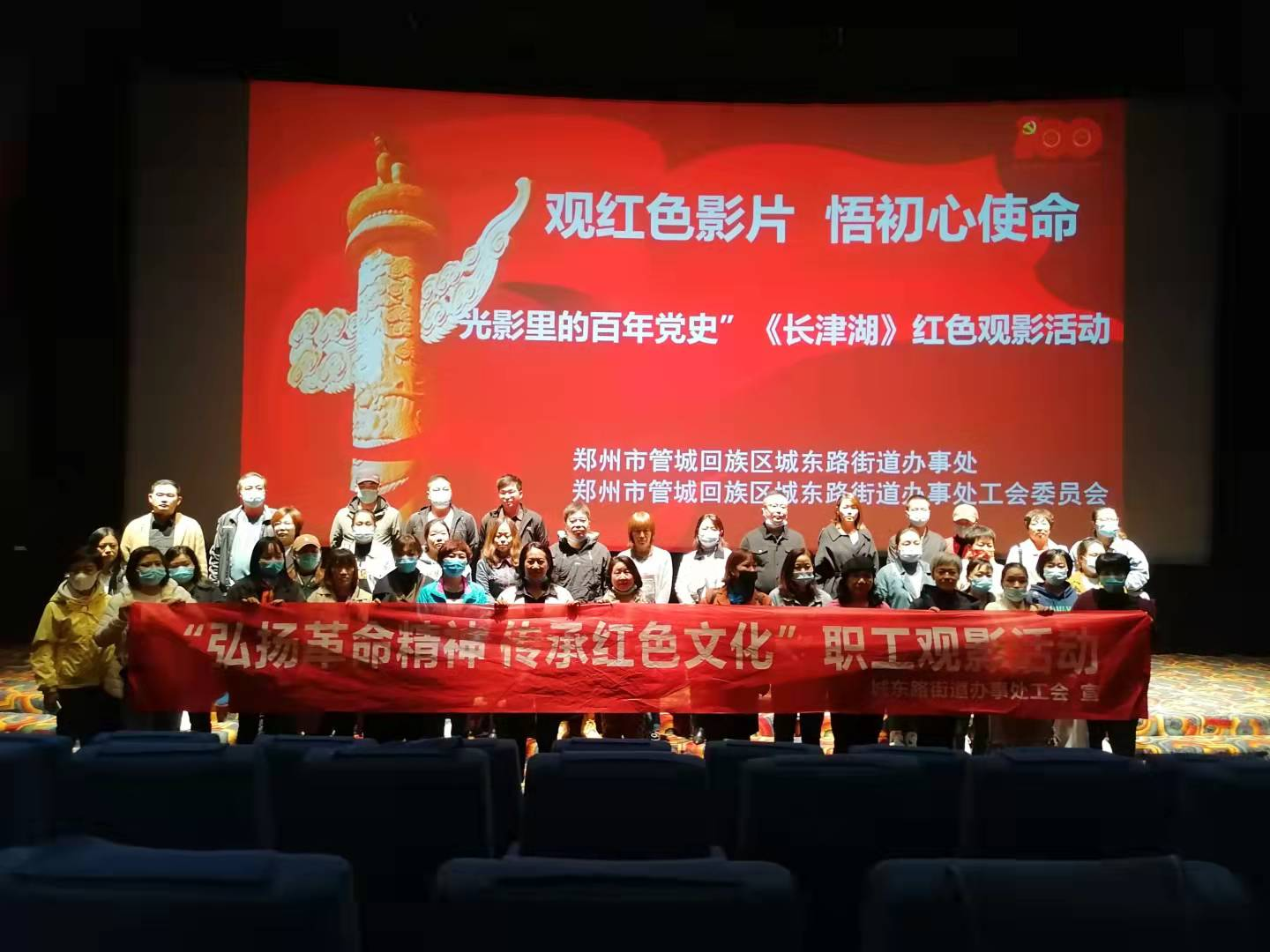 为了进一步推动党史学习教育活动,增强工会与职工之间的感情,培育职工的团结感、责任感,增强爱党、爱国主义情怀以及民族自豪感和认同感。10月20日,城东路街道办事处工会组织职工集体观看电影《长津湖》和《我和我的父辈》。