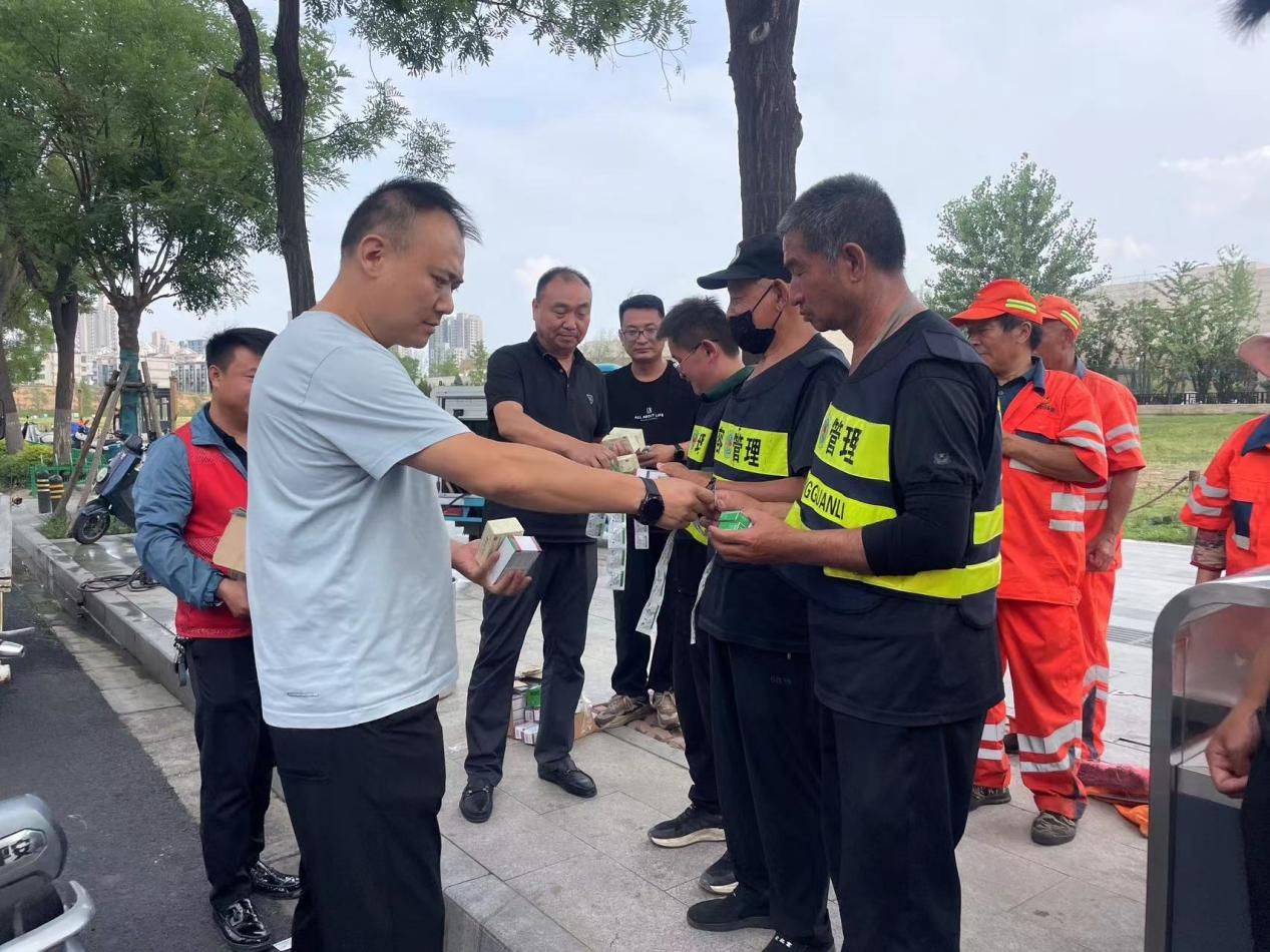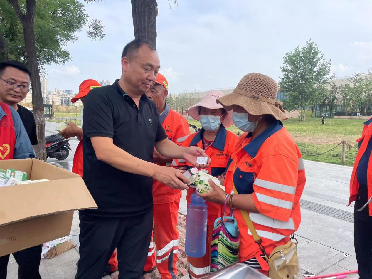活动现场,爱心驿站工作人员为奋斗在一线岗位的环卫工人、协管人员、新业态劳动者送去藿香正气液、清凉油、冰糖、绿豆水等防暑降温物品,用实际行动呵护职工的安全健康。外卖员小李说:“爱心驿站真是太暖心了,平常可以在那里休息、喝水、手机还能充电,现在天气热了还发降温物资,真是实实在在为职工服务。”