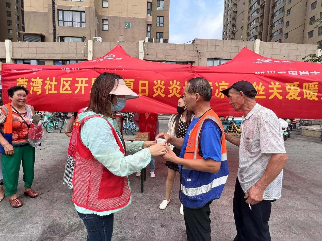 活动现场,蓉湾社区党支部书记胡琼芳向广大环卫工作者致以崇高的敬意和亲切的问候,给他们送去了夏季防暑降温的小电扇,对大家高温天气下坚守岗位、辛苦劳动的精神表示高度赞扬,并叮嘱他们在温度持续走高的情况下,做好自我防护,谨防中暑,确保自身安全。医尚阁负责人表示,每天都会有煮好的茶供环卫工人使用,任何时候路过了都可以进去休息喝水,切切实实为环卫工人服务。