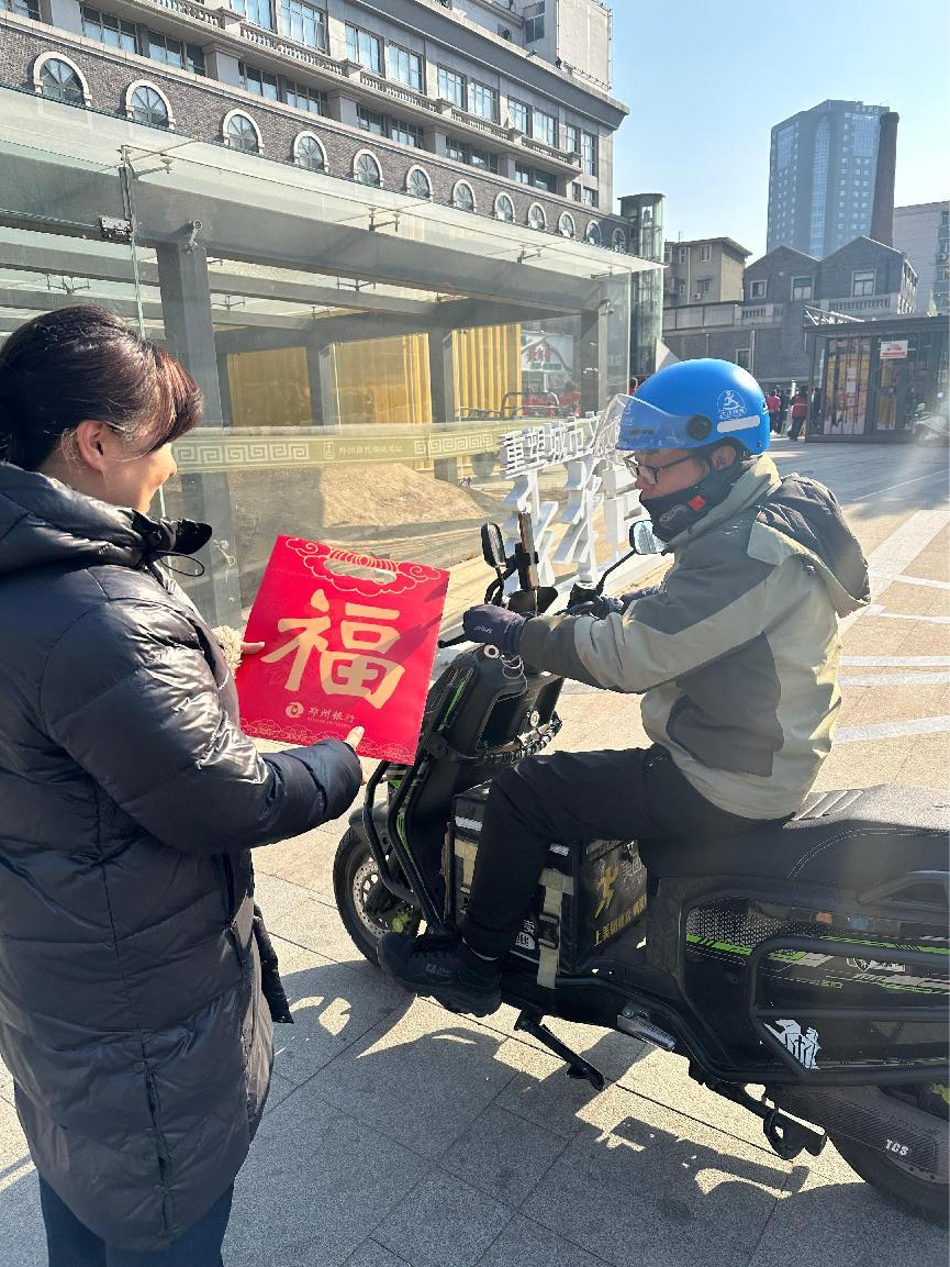 在活动过程中,工会工作人员与驻足在工会驿站前的新就业形态人员亲切交流,了解新就业形态劳动者们的工作和生活情况,倾听他们的需求和心声,并为他们送上了新春祝福,让新就业形态人员在寒冷的冬日里感受到了实实在在的温暖。