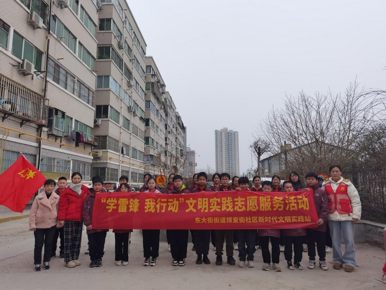 为弘扬雷锋精神,践行志愿者文明精神。3月4日,管城区东大街街道办事处工会及博爱街社区联合创新街小学到佳苑小区开展“学雷锋 我行动”文明实践志愿者服务,参与人员共计30余名。