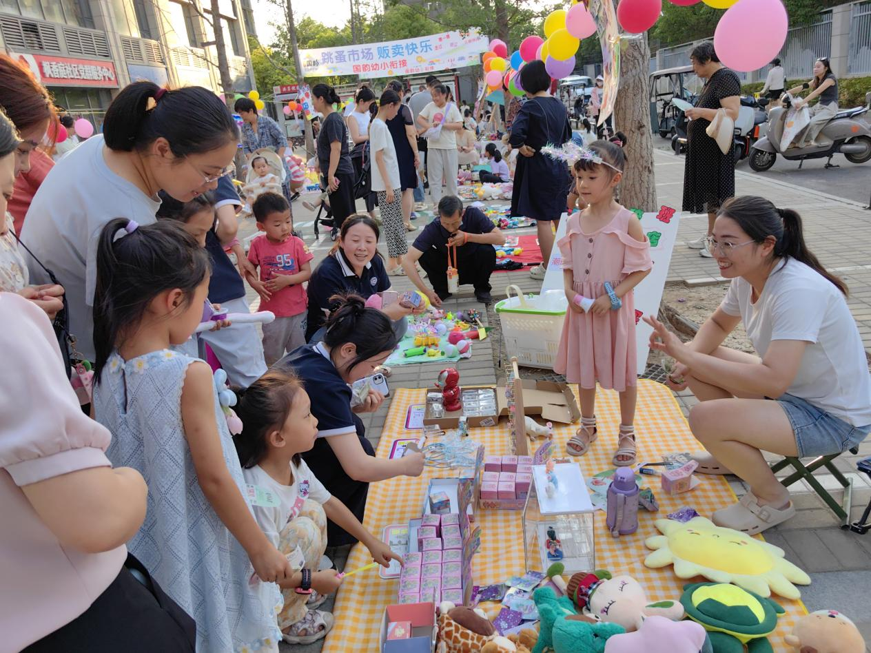 活动现场,童趣满满,热闹非凡。孩子们早早带着精心准备的“货物”来到现场,将闲置的玩具、书籍、文具等物品有序摆放在摊位上。每个摊位都独具特色,孩子们充分发挥创意,制作出色彩鲜艳、个性十足的摊位招牌,有的还设计了吸引人注目的促销标语,稚嫩的笔触搭配着超萌简笔画,瞬间抓住小顾客们的目光。“走过路过千万不要错过,大家快来买呀”。孩子们变身“小摊主”,热情的向来往的顾客推销自己的商品。稚嫩的吆喝声回荡在整个市集。他们在讨价还价中,学会了沟通与表达;在清点“收入”时,锻炼了计算能力;在与小伙伴的交易过程中,收获了友谊与快乐。家长们也积极参与其中,既是孩子们的“生意参谋”,帮忙出谋划策,又是忠实的“顾客”,支持孩子们的“小生意”。市集上,家长们相互交流育儿经验,孩子们结伴穿梭选购,欢声笑语不断,邻里之间的情谊也在悄然升温。