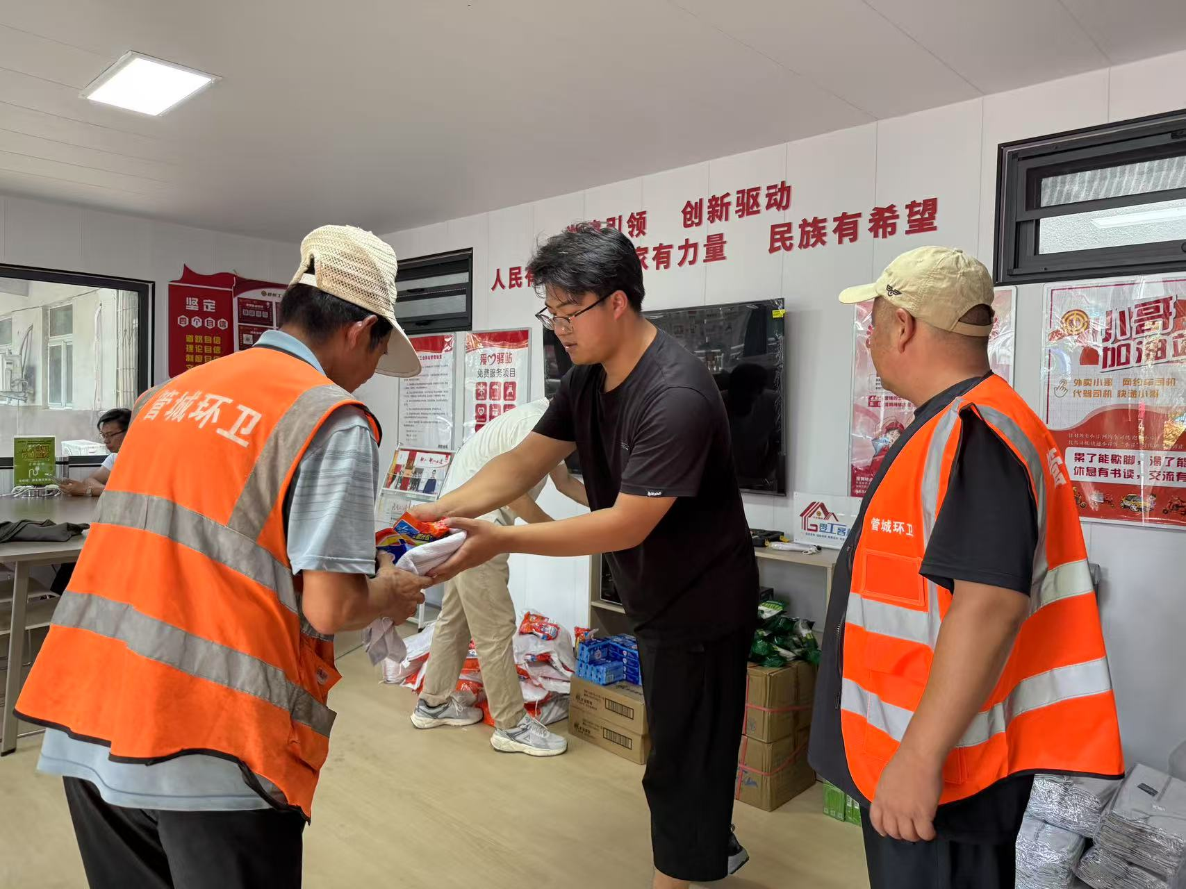 为致敬高温下坚守岗位的环卫工作者,7月21日,在管城区总工会的支持下,二里岗街道工会在货站北街工会驿站开展“夏日送清凉”活动,为辖区高温劳动者送去贴心物资与关怀。