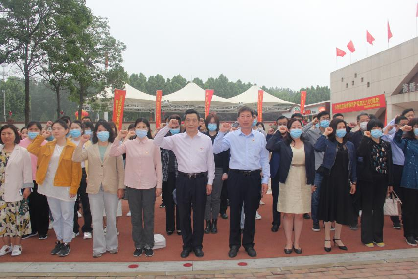 活动开始时,工会代表们面对党旗,举起右拳,在区总工会副主席常文艺的领读下庄严宣誓,重温入党誓词。