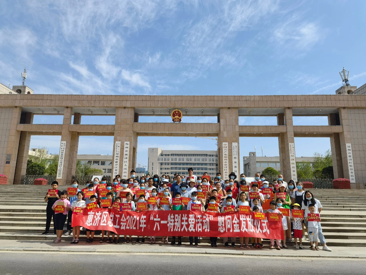 5月29日,惠济区总工会在大河广场开展了“六一特别关爱活动”慰问金发放仪式,为辖区46名困难职工九年制义务教育子女发放慰问金。活动现场,惠济区人大常委会副主任、区总工会主席袁加军详细了解了困难职工的家庭生活情况和孩子的学习情况,并鼓励他们要勇于面对困难,积极乐观地面对生活,在工会组织和全社会的关心支持下,努力把孩子培养成为一个有作为、对祖国有贡献的人。