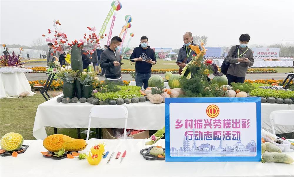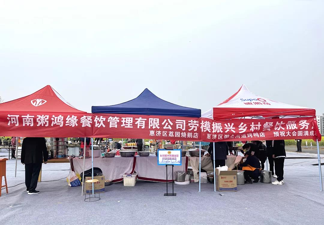 为解决参会者就餐问题,省劳模、河南粥鸿缘餐饮管理有限公司董事长肖于波带领4名豫菜大师早早地就来到了博览会现场,支起炉灶、准备好菜品,为近2000余人提供平价午餐。之前,肖于波多次奔走于孙庄村和博览会之间,指导孙庄村兴建民宿,兴办特色餐饮产业,努力为乡村振兴贡献力量。省先进工作者、惠济区人民医院院长张庆普也带领医护人员早早地来到了现场,为博览会提供疫情防护和医疗保障志愿服务,为博览会的顺利开展保驾护航。